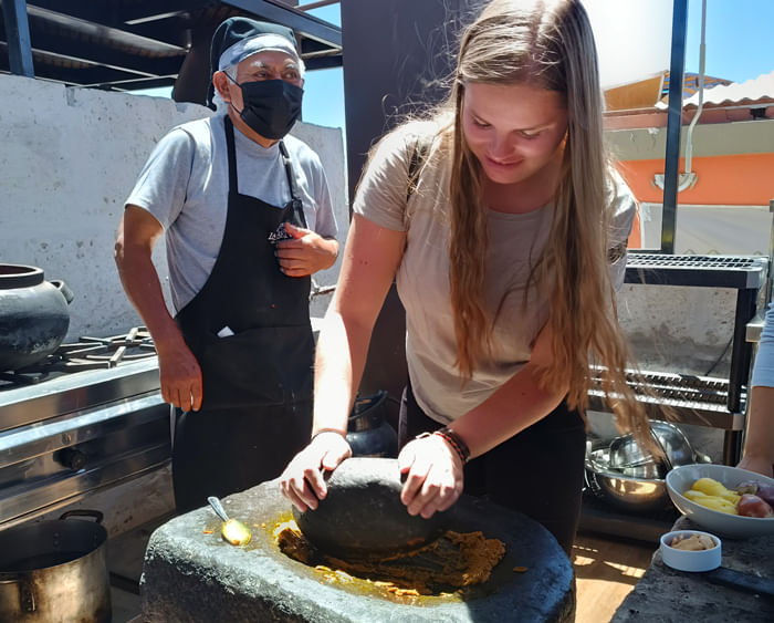 During this Arequipa walking food tour, you will sample more than 15 Peruvian foods and drinks that are typical from Arequipa and its region. You will even have the opportunity to interact with some of our local hosts to learn how to cook guinea pig and alpaca, and as well learning all the ins and outs of preparing ocopa with a "batán". You will learn about all the historical and cultural details behind each dish and drink that you will have the chance to taste during this 4-hour Arequipa walking food tour.